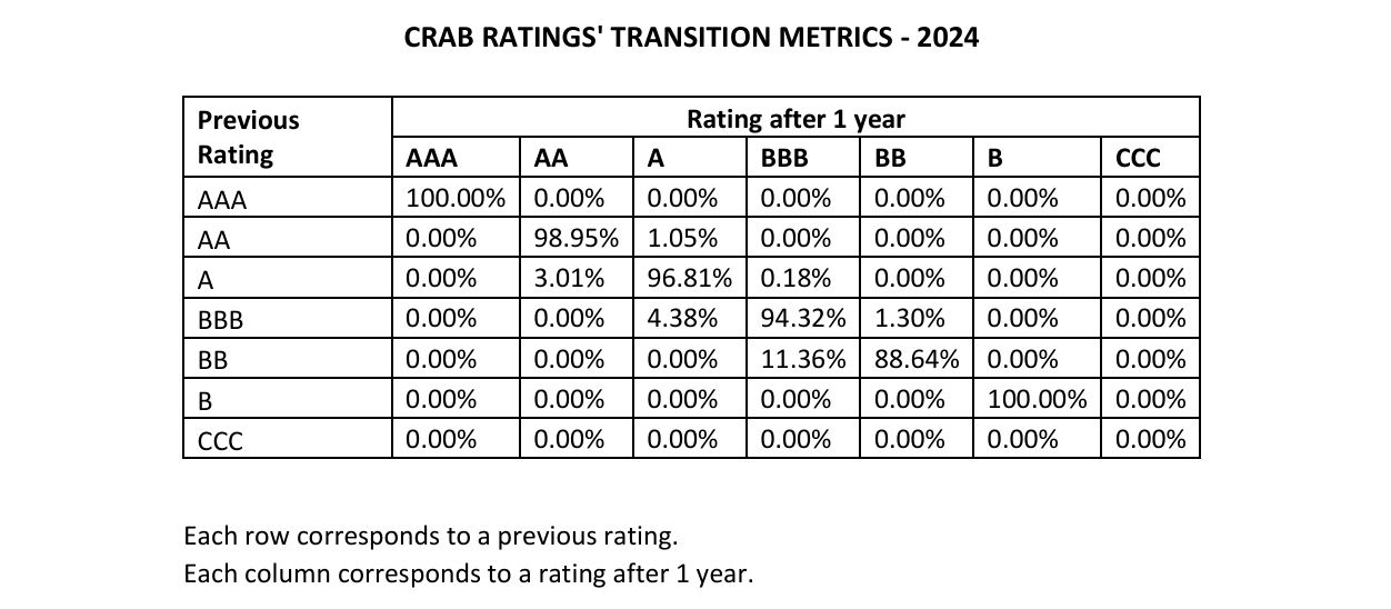 CRAB RATINGS’ TRANSITION METRICS- 2023